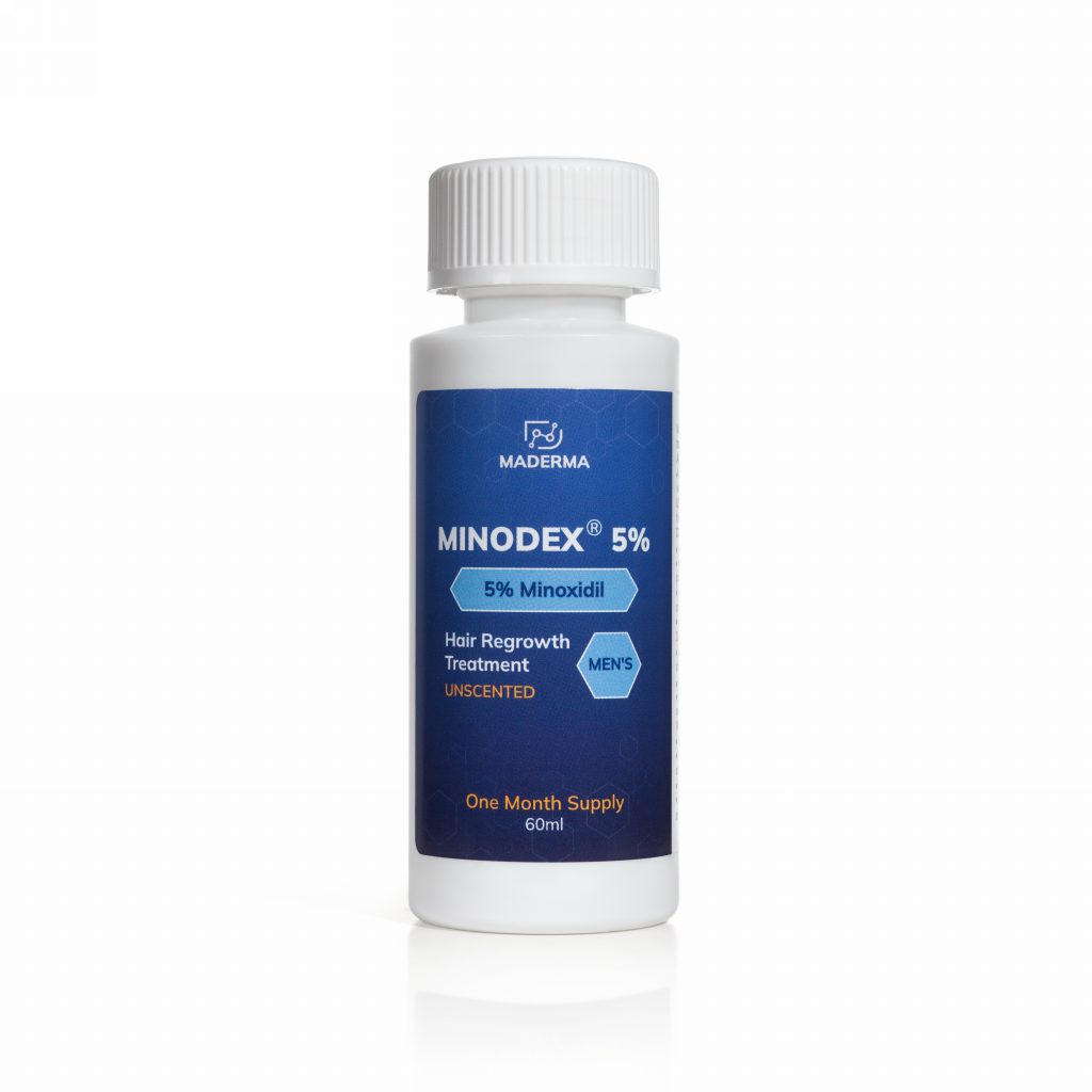 —  Men’s Minodex Extra Strength Unscented 5% Minoxidil Topical Solution to help treat hair loss, maintain hair density and allow for the regrowth of fuller hair.